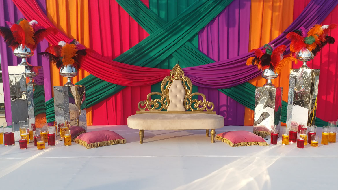 Kına tahtı ve çevresi, hem geleneksel dokuları hem de modern şıklığı yansıtan binlerce farklı konseptle sizler için hazırlanıyor. Renk uyumu, ışıklandırma, çiçek süslemeleri ve aksesuarlarla oluşturulan alan, tam anlamıyla bir görsel şölen sunuyor.